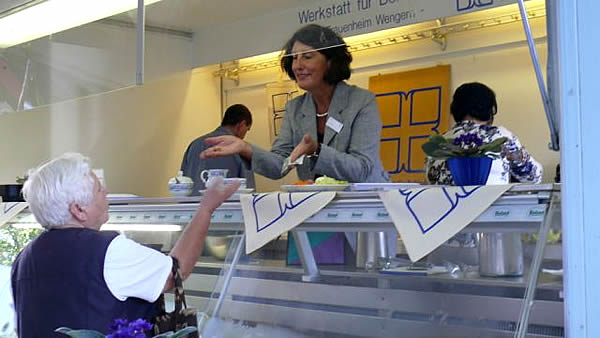 Speziell über die Wohngemeinschaften für Frauen und Männer im mittleren Alter, die aufgrund ihrer psychischen Erkrankung nicht mehr alleine wohnen können, ließen sich viele Leute informieren. Die Werkstatt für behinderte Menschen bot frische Bio-Salate mit Ei und hausgemachten Dressings an. Bei dem schwülen Wetter griffen viele Leute zu.