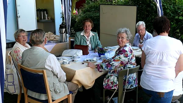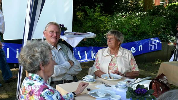 Bei Salat und einem Kaffee im Schatten wurden dann viele Neuigkeiten über das Wohnen und Arbeiten und über die Produkte ausgetauscht.