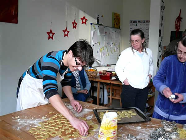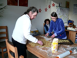 Zur Adventsbäckerei im Treffpunkt und in der Tagesstruktur der Wohngemeinschaft in der Osterfeldstraße luden die Jusos Wetter auch in diesem Jahr Frauen und Männer ein, die sich von NAOMI - ambulant betreutes Wohnen- begleiten lassen.