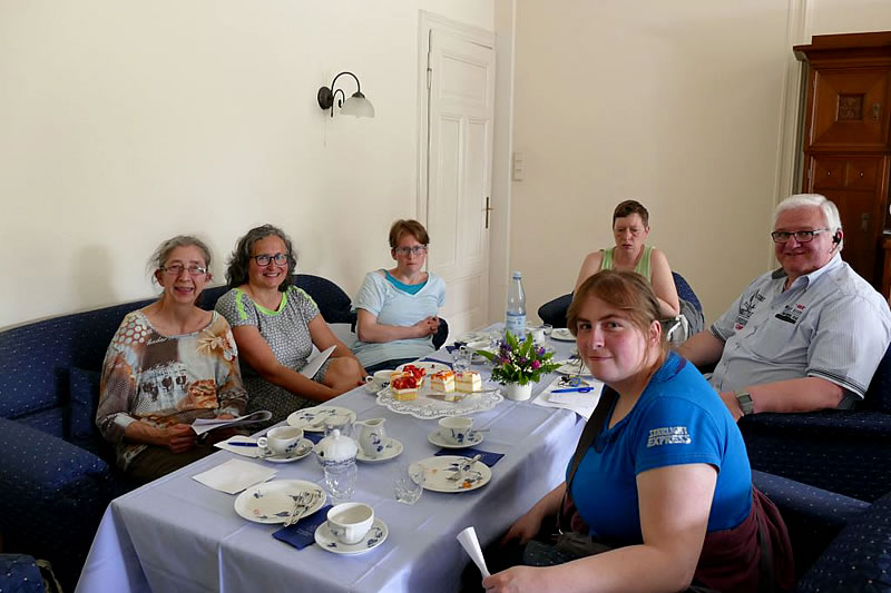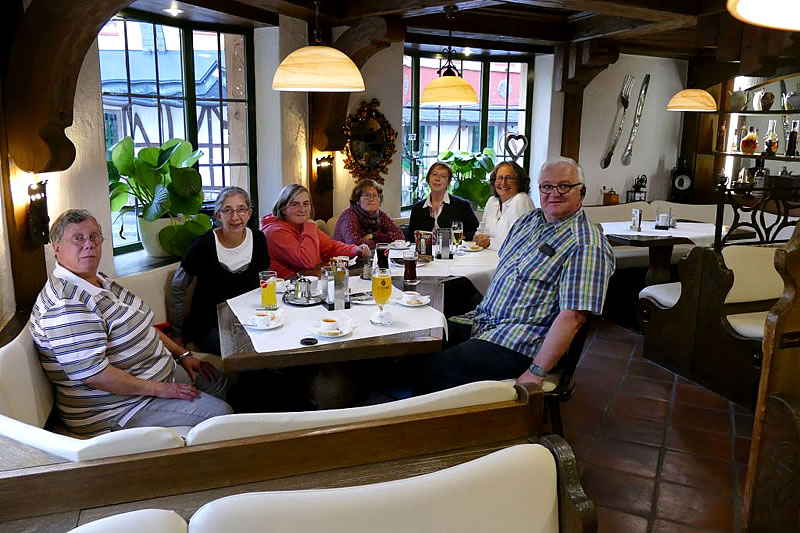 Es gab einen Aperitif mit Salzgebäck und ein spätes Nachtmahl. Danach wurden wir in unser Hotel gebracht. Nachdem unsere Zimmer gefunden wurden, waren wir überaus dankbar dafür, dass Detlev Weigmann in der neuen Außenstelle Schöntal der WfbM ein Schließsystem mit Knopfdruck kennengelernt und benutzt hatte. So hatten wir nicht nur ein Zimmer und einen Knopf, sondern auch jemanden, der uns das Zimmer mit dem Knopf öffnete.