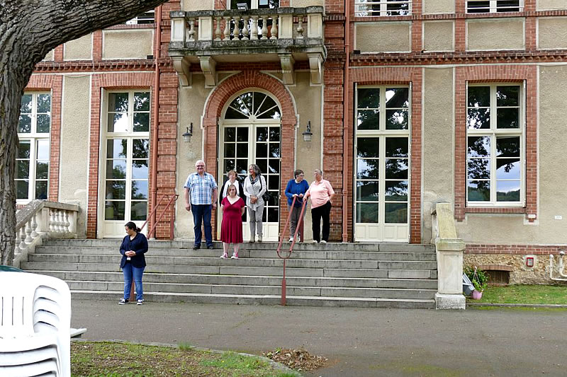 Es war ein großartiger Empfang. Wir lernten alle Bewohnerinnen und Mitarbeiterinnen auf einmal kennen, insbesondere: Nelly, Delphine, Lysanne, Phillipine, Camille, Marietta, Etienne, Emanuel, Monsieur le Direktor und 34 andere sehr nette, sehr gesprächige Frauen.