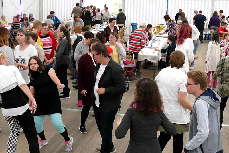 Bewohnerinnen und Bewohner, Klientinnen und Klienten und Beschäftigte feierten am 29. September eine Geburtstagsparty aus Anlass des 100jährigen Bestehens des Frauenheim Wengern. Denn dieser Dank gehörte ihnen, jenen, die die Unterstützung der Einrichtung annahmen.