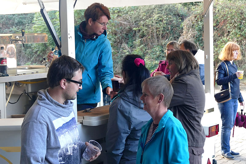 Zunächst gab es den offiziellen Dank und Ehrung mit Urkunde, Blumen oder - bei 25jähriger Tätigkeit - eine Uhr durch den Werkstattleiter Thomas Schiebille. Dann stärkten sich alle mit Leberkäse und Krautsalat. DJ Mark brachte anschließend alle Beteiligte in Stimmung und Bewegung.