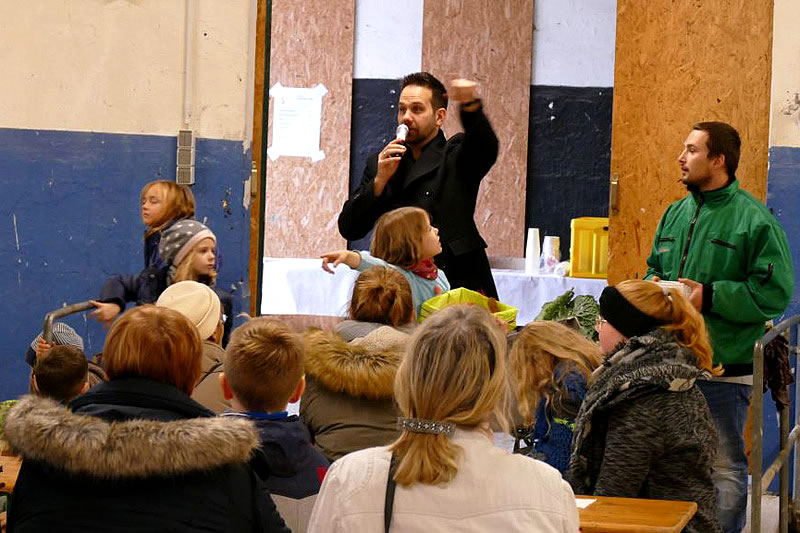 Zum Ausklang fand die beliebte Versteigerung der Erntegaben zugunsten von „Brot für die Welt“ statt. Pfarrer Michael Waschhof organisierte diese gekonnt. Im Trocknen des ehemaligen Kuhstalls wurde bei guter Stimmung das ein und andere der Erntegaben ersteigert.