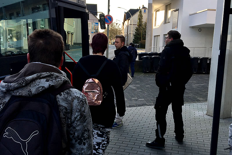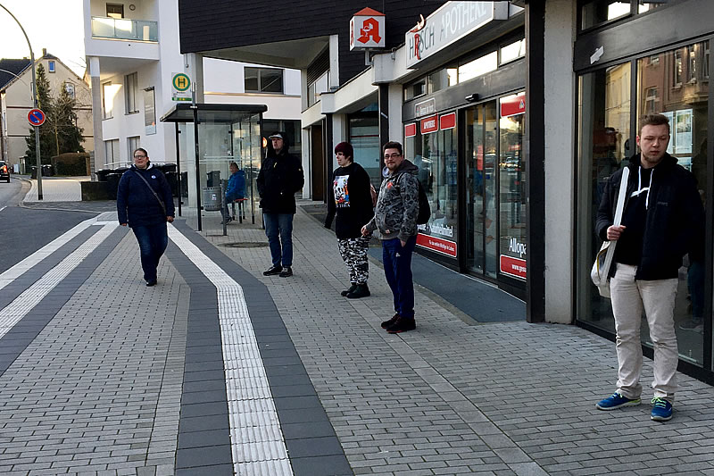 Zuvor mussten die Abstandsregeln auf dem Weg von zu Hause zur Haltestelle einüben. Zwei Meter Abstand: beim Warten auf den Werkstattbus, beim Einsteigen, beim Fahren im Bus, beim Aussteigen, auf dem Weg zum Arbeitsplatz – all das muss trainiert werden.
