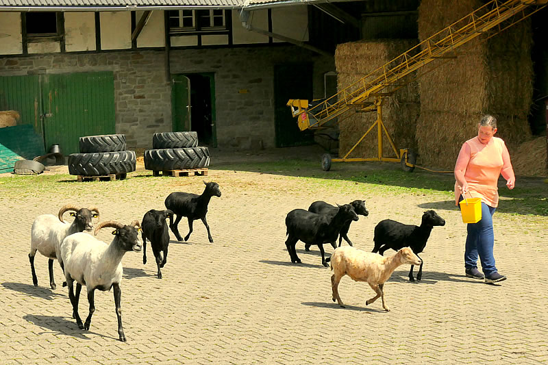 „Wer einfach mal Ruhe braucht oder sich zurückziehen will, der kann sich entweder auf die Bank zu den Schafen setzen, die auf unserer Weide steht. Oder er macht einen Spaziergang mit der Ziege an der Leine“, ist er sich sicher. Daher sollen die Ziegen, die sehr zahm sind, leinenführig gemacht werden.