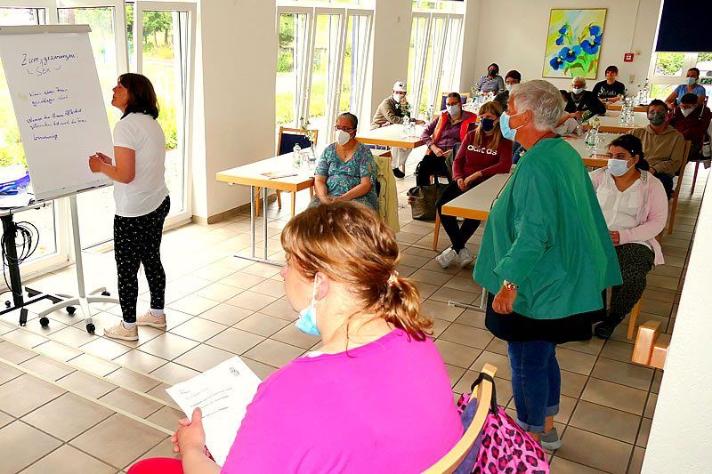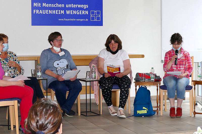 Der Leitfaden basiert auf den eigenen Erfahrungen der Frauen und den Gegebenheiten im Frauenheim. Er lässt sich aber auch von anderen Frauen mit Behinderung in anderen Einrichtungen nutzen. Manuela Twarock, Astrid Tremblau, Martina Stang, Svenja Müller – alle sind Mitglieder der Frauengruppe Mutig und Stark – sowie Marion Steffens und Andrea Stolte – gesine intervention – stellten insgesamt den Leitfaden ca. 80 Frauen vor und gaben praktische Tipps, sich gegen Gewalt zu wehren.