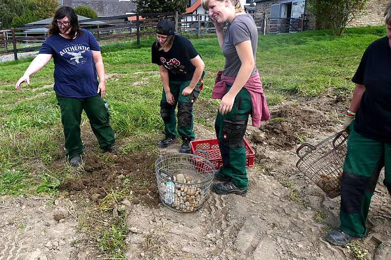 Nach erfolgreich abgeschlossener Kartoffelernte im FRAUENHEIM WENGERN wurden in einer Gemeinschaftsaktion Mitte September die restlichen Kartoffeln aufgelesen. Helferinnen und Helfer aus dem Gartenbau, der Landwirtschaft und des Förderbereichs der Werkstatt versammelten sich nach der Mittagpause auf dem Kartoffelacker des FRAUENHEIM WENGERN und gingen munter ans Werk.