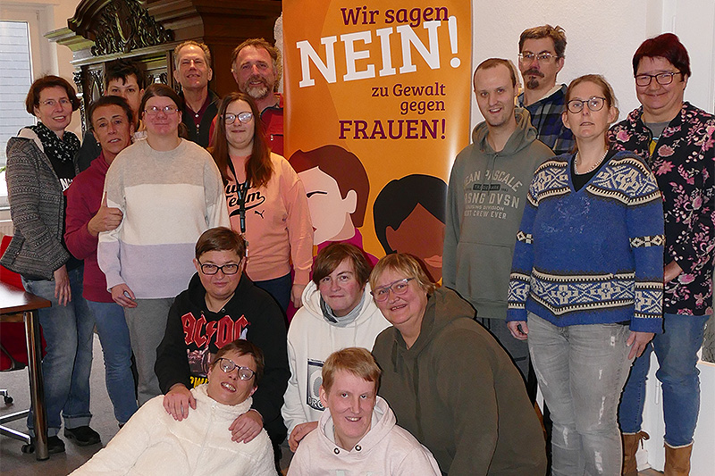 Mitarbeitende und Beschäftigte der WfbM des FRAUENHEIM WENGERN sagen: NEIN zu Gewalt an Frauen! Sie bekräftigen damit die Inhalte der UN-Kampagne „Orange days“.