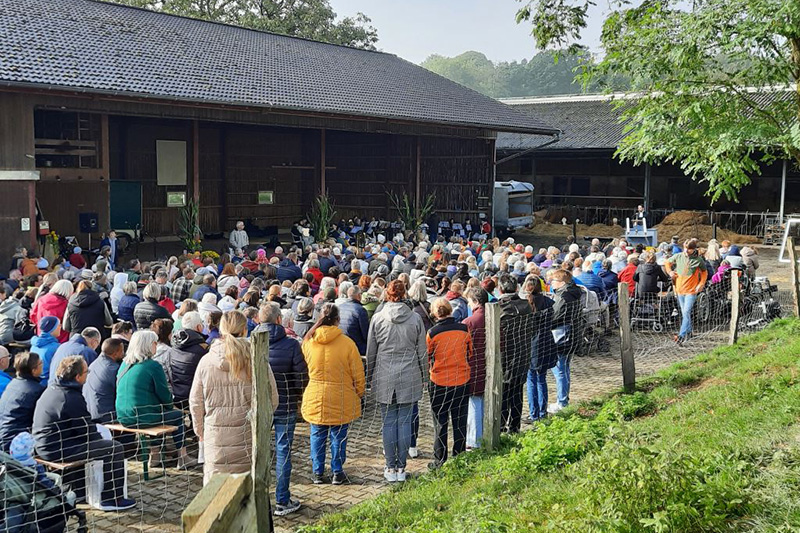 Es ist schon gute Tradition, dass der Erntedank-Gottesdienst mit anschließendem Familienfest der Evangelischen Kirchengemeinde Wengern auf den Bauernhof der WfbM FRAUENHEIM WENGERN gefeiert wird. Corona hat zunächst zu einem Abbruch geführt. Im letzten Jahr wurde diese Tradition wieder aufgenommen.