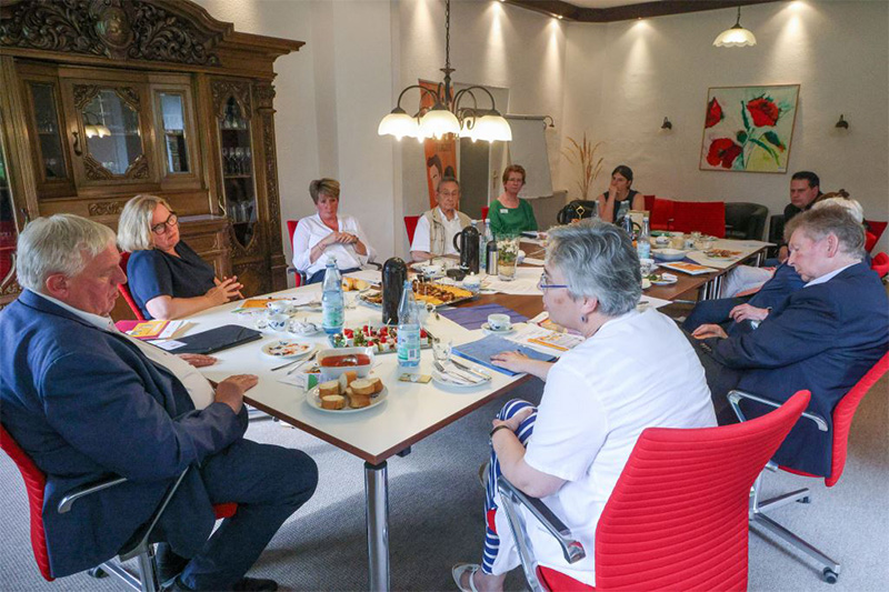 Sie ließen sich von Pfarrerin Birgit Reiche, Geschäftsführung der Evangelische Frauenhilfe in Westfalen e. V., und Gesamtleitung des FRAUENHEIM WENGERN Nadine Somer ein spannendes Projekt vorstellen: die Errichtung eines Schutzhauses für Frauen mit psychischen und geistigen Behinderungen, die von Gewalt betroffen sind. Das Gebäude, welches für das Frauenhaus umgebaut werden soll, wurde anschließend - nach einem Rundgang auf dem Gelände des FRAUENHEIM -besichtigt. Am Schluss war klar, dass bei weiteren Fördermittelgebern angefragt und Anträge gestellt werden müssen, um zu prüfen, ob und wie das Frauenhaus künftig finanziert werden könnte.