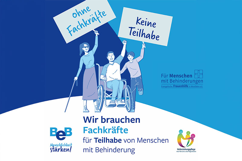 Mit ihrer Fachkompetenz tragen Fachkräfte maßgeblich dazu bei, dass die Prinzipien der UN-BRK sowie des Bundesteilhabegesetzes in Deutschland gelebt werden. Das wissen auch wir in der Evangelischen Frauenhilfe in Westfalen mit unseren Arbeitsbereichen der Eingliederungshilfe im Märkischen Kreis und im Ennepe-Ruhr-Kreis. Gemeinsam machen wir uns für die Wertschätzung und Anerkennung dieser Berufe stark!