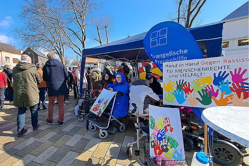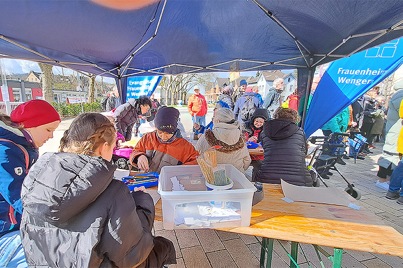 Viele Bürger*innen aus Wetter demonstrierten für Demokratie und Vielfalt im März im Rahmen der Aktionswoche gegen Rassismus. Es gab eine große Kundgebung am Stadtsaal und das FRAUENHEIM WENGERN war mittendrin. Am eigenen Stand konnten alle Besucher*innen kreativ mitwirken und basteln, malen und ausschneiden.