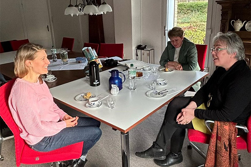 Verena Schäffer, Fraktionsvorsitzende der BÜNDNIS 90/DIE GRÜNEN im Landtag NRW, und Nadine Somer, Leitung des FRAUENHEIM WENGERN, und Pfarrerin Birgit Reiche, Geschäftsführerin der Evangelischen Frauenhilfe in Westfalen e.V. (EFHiW), führten Anfang März einen regen Austausch. Die Landtagsabgeordnete zeigte hohes Interesse, die Einrichtung der Eingliederungshilfe und die neuen Leitungen – die des FRAUENHEIM WENGERN und die der Trägerin, der EFHiW - kennenzulernen.