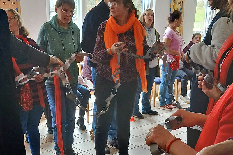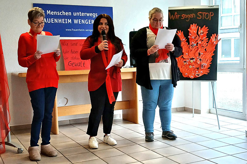 Organisiert wurde die Veranstaltung von den Frauenbeauftragten Katrin Hilbig und Claudia Kockskämper, unterstützt von Zaklina Memedovic. Mit großem Engagement hatten sie erneut einen Raum geschaffen, in dem Solidarität sichtbar und spürbar wurde. Viele – so auch Pfarrerin Birgit Reiche, Geschäftsführerin der Evangelischen Frauenhilfe in Westfalen, folgten der Einladung, ein rotes Accessoire zu tragen – ein Symbol für Kraft, Energie und den gemeinsamen Willen, Gewalt entschieden entgegenzutreten.